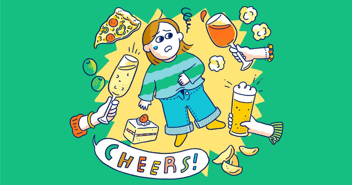 もあい:まず覚えておいてほしいのが、食べ過ぎや飲み過ぎをしても、摂取したカロリーがすぐ体脂肪に変わるわけではないということ。食べ物によって消化の時間が違うため一概にはいえませんが、およそ2〜3日で脂肪に変わり、目で見てわかる変化は2週間程度かかるといわれています。そのため、1、2日程度の食べ過ぎや飲み過ぎなら翌日の食事を控えめにするなどして調整すればあまりからだに負担はかからないでしょう。