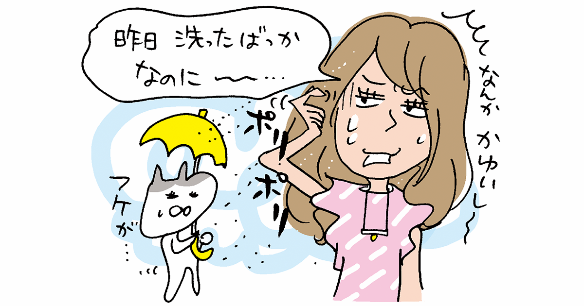 逆に髪の洗わなさすぎの場合は、頭皮に皮脂が蓄積して脂性のフケが増えてしまいます。この脂は時間の経過とともに、酸化してすえたニオイを引き起こします。酸化した脂は皮膚にとって刺激物質となり、肌あれを引き起こしてしまいます。また、皮脂が多いと、細菌が繁殖しやすいのでかゆみを招いてしまうことも・・・。