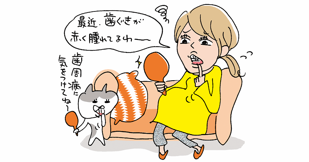 とくに妊娠中は歯周病がとても進行しやすい時期です。理由として、女性ホルモンには、ある特定の歯周病菌の増殖を促したり、歯周組織の炎症を悪化させたりする作用があるのです。その一方で、つわりなどで歯みがきもこれまで以上には十分に行えず・・・こうした背景から歯周病のリスクが高まるといわれています。