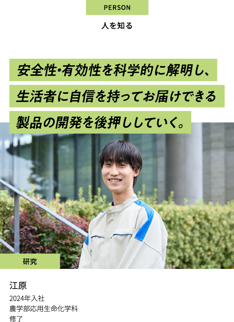 有効性や安全性にこだわり抜き、自信をもって世の中に出せるような製品の開発に携わりたいと思うように。