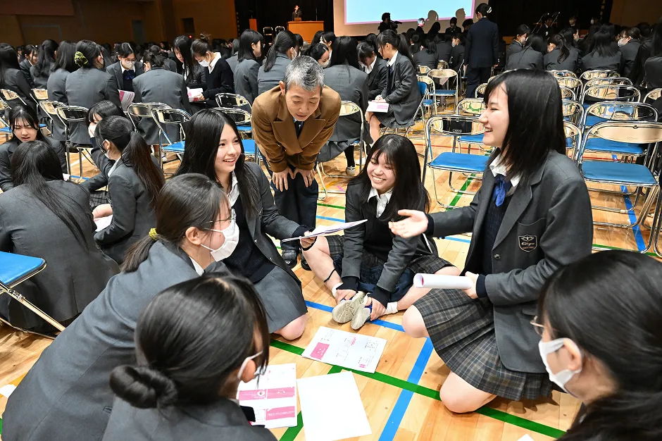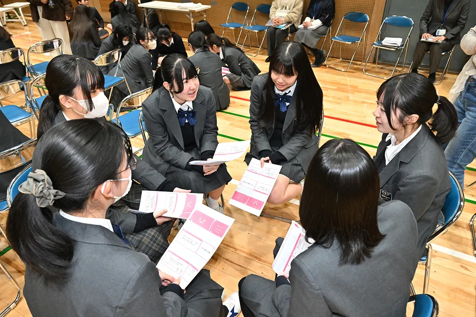 次に、講義を踏まえ、学校生活の中で起こりうる場面を設定し、「仲の良い友人がつらそうにしながら教室にいたら、あなたならどうしますか?」というシナリオでグループに分かれてディスカッションを行いました。生徒からは「声をかけてカイロやブランケットを貸す」「移動教室なら、荷物を持ってあげる」といった直接的なサポートのほか「気分が紛れるよう楽しい話をする」「一緒に軽いストレッチをする」など、友人ならではの細やかな配慮が詰まった具体的な意見が活発に交わされました。最後に、高尾先生から生徒たちへメッセージが送られました。「相手が何を望んでいるのかを想像することが大切。ただし、人によって求める助けは異なるため、多様なケースがあることを前提としたコミュニケーションを心がけてほしい」という温かくも本質的な助言で、本セミナーは締めくくられました。