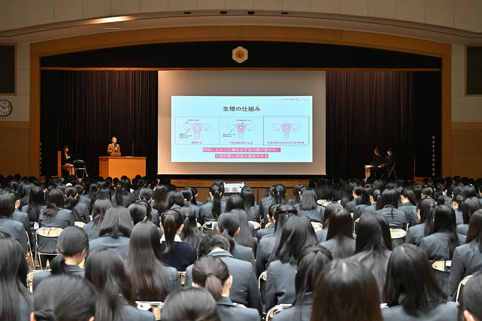 3月9日(月)、授業の趣旨に賛同いただいた鷗友学園女子中学高等学校 高校1・2年469名を対象に、「生理・生理痛について“学び・考える授業”」を実施しました。