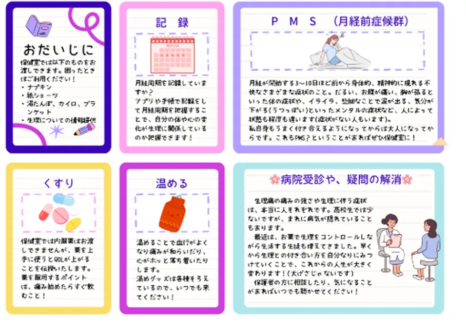 女子トイレに「生理関係で困ったら保健室へ」との掲示を行いました。