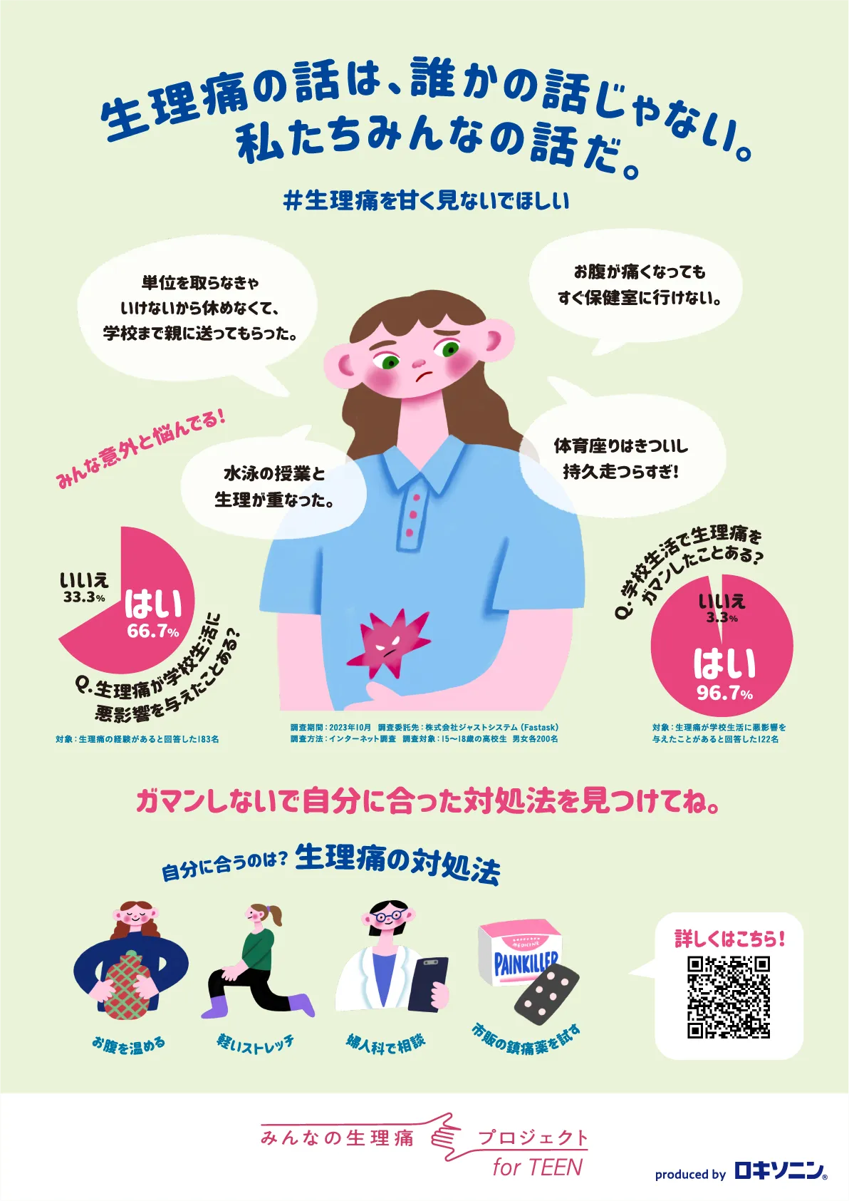 養護教諭の皆様がご自身の学校で、生徒・保護者に向けて発信される保健だよりや校内掲示物などに活用いただけるよう、生理・生理痛に関する情報を公開しています。