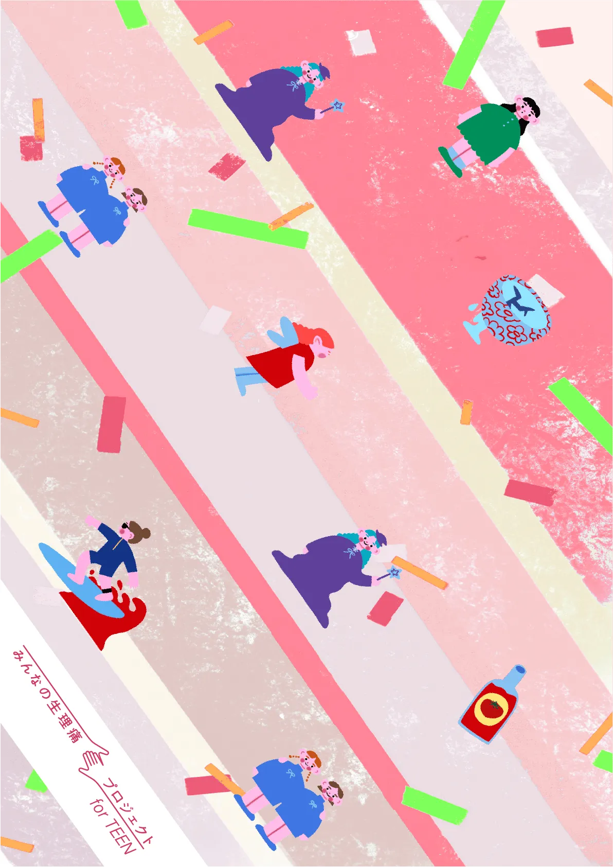 生理・生理痛に悩む生徒に向けて、保健室でのコミュニケーションにお使いいただけるリーフレットを作成しました。ナプキンを配布・貸出される際に包むカバーとしてもご利用いただけます。ダウンロードいただきB5やA4サイズで印刷してお使いください。表面には生理痛に悩む高校生の実態や対処法に関する情報を、裏面には世界各国の生理にまつわる言葉をイラストで表現しました。