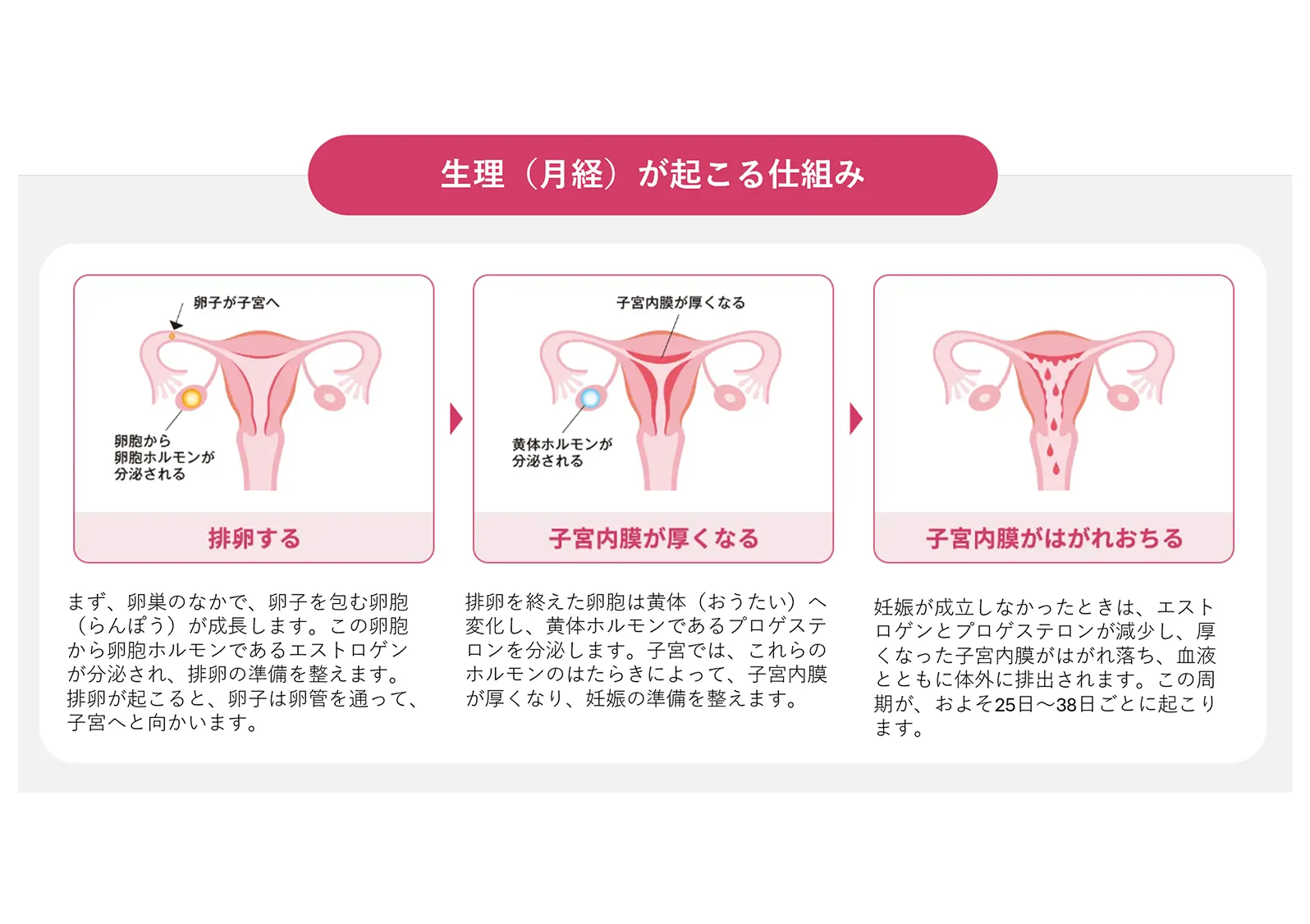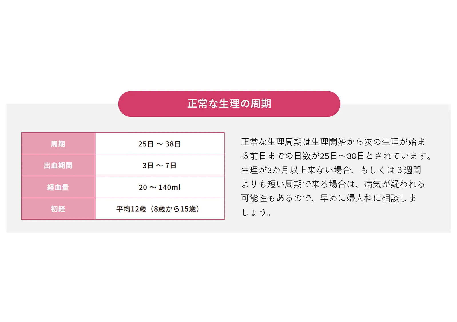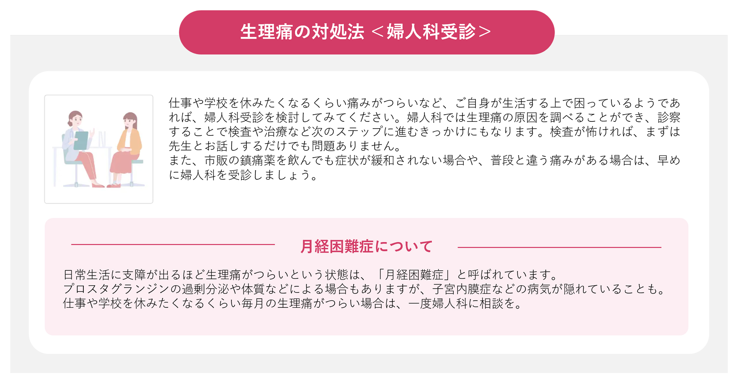 養護教諭の皆様がご自身の学校で、生徒・保護者に向けて発信される保健だよりや校内掲示物などに活用いただけるよう、生理・生理痛に関する情報を公開しています。