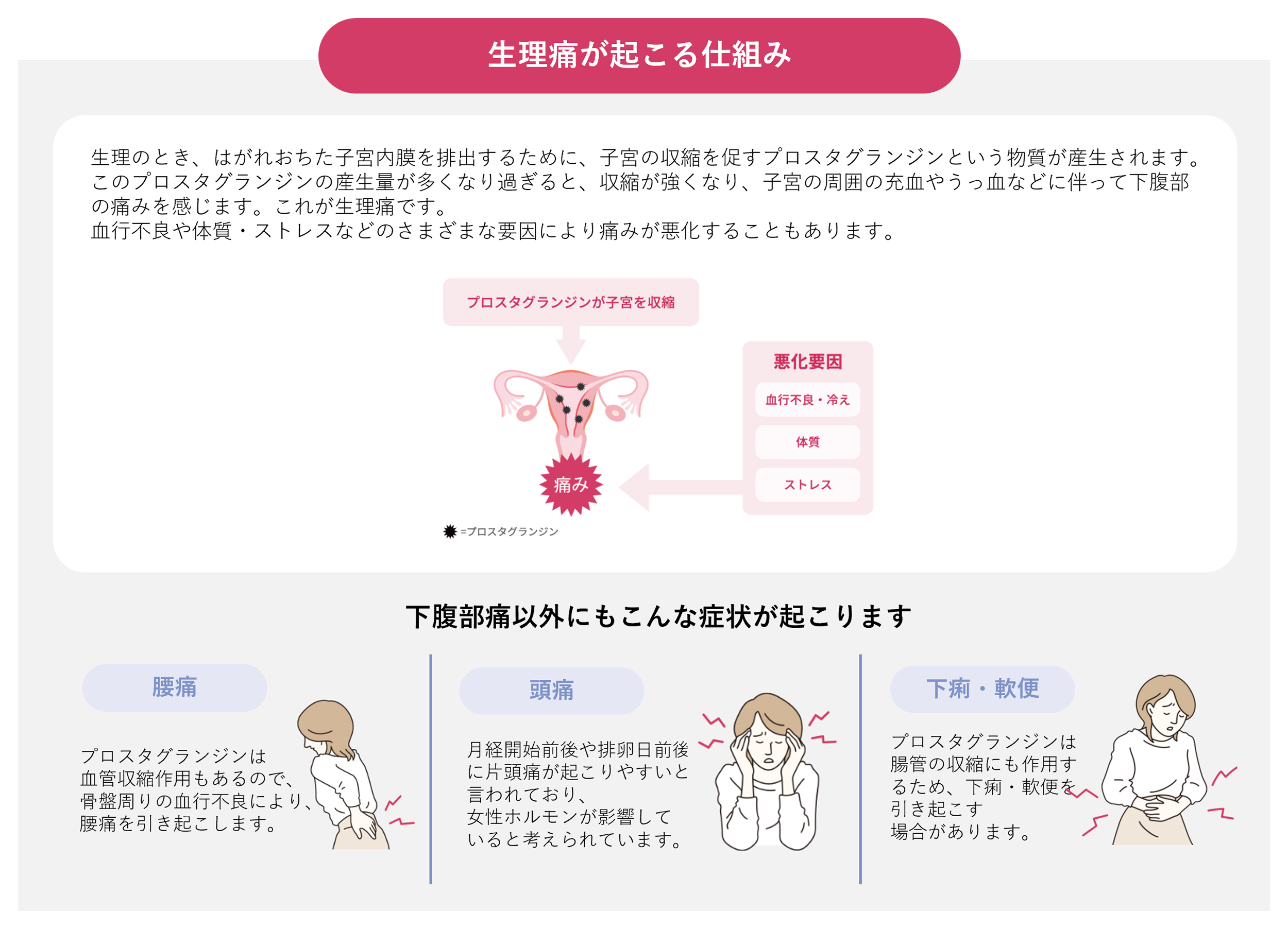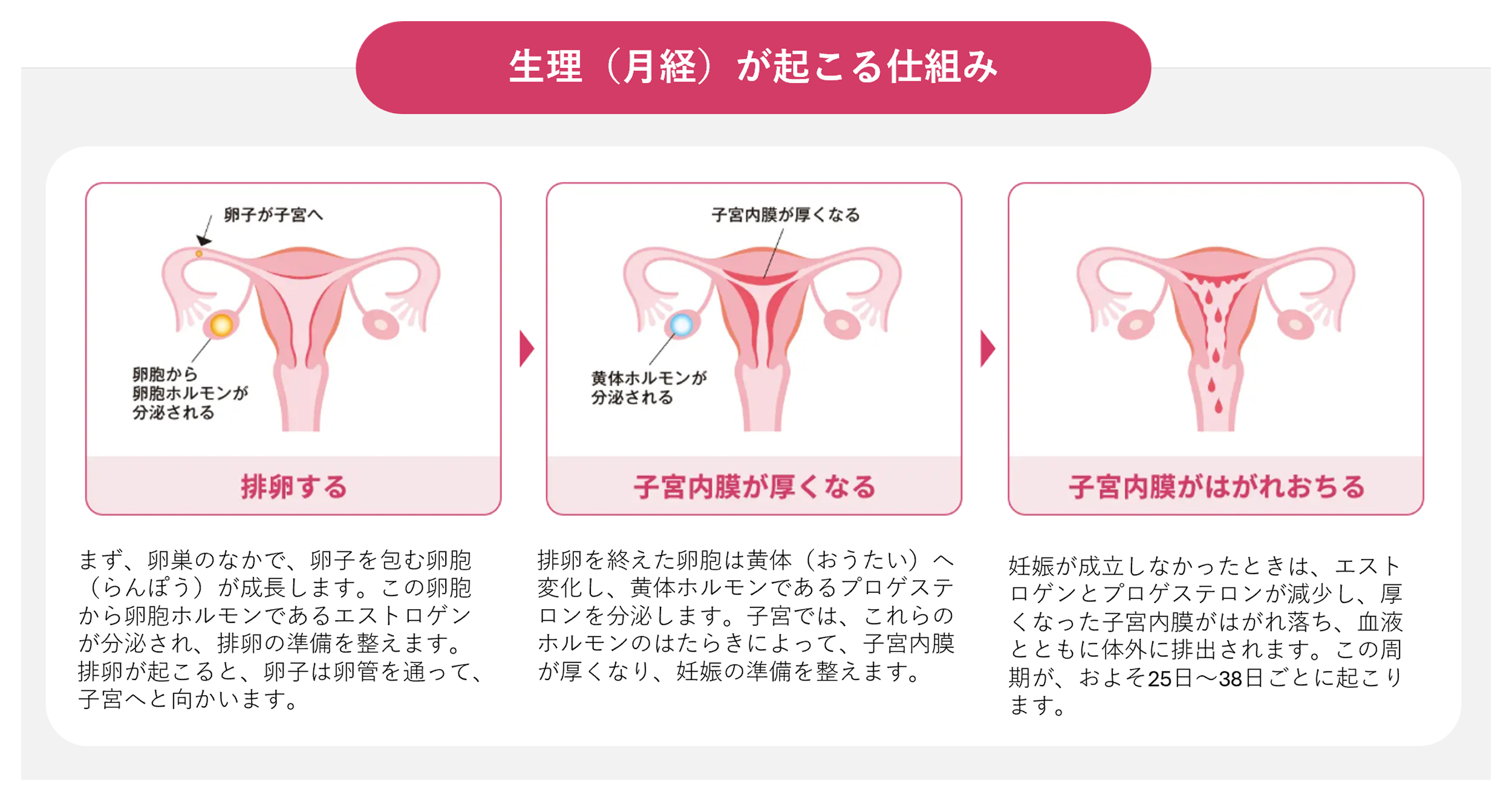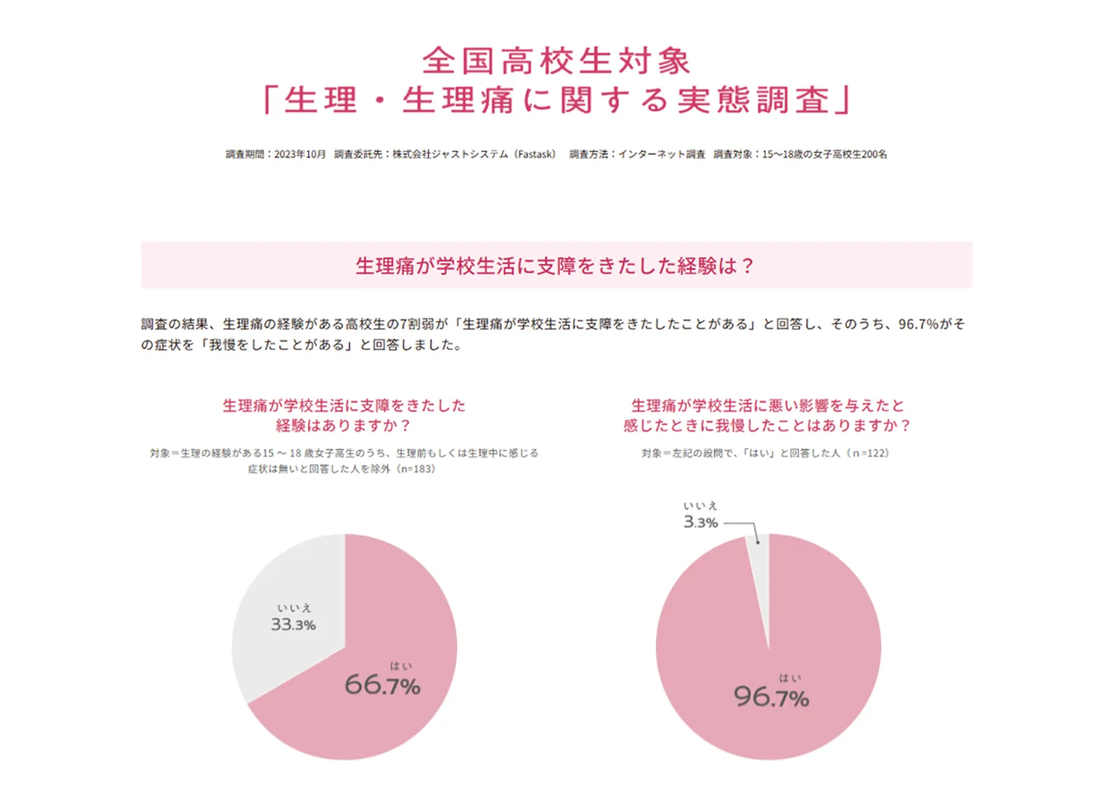 養護教諭の皆様がご自身の学校で、生徒・保護者に向けて発信される保健だよりや校内掲示物などに活用いただけるよう、生理・生理痛に関する情報を公開しています。